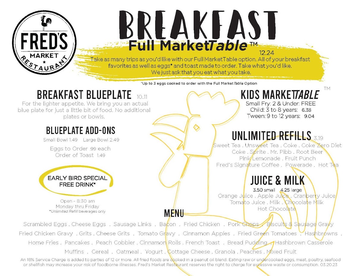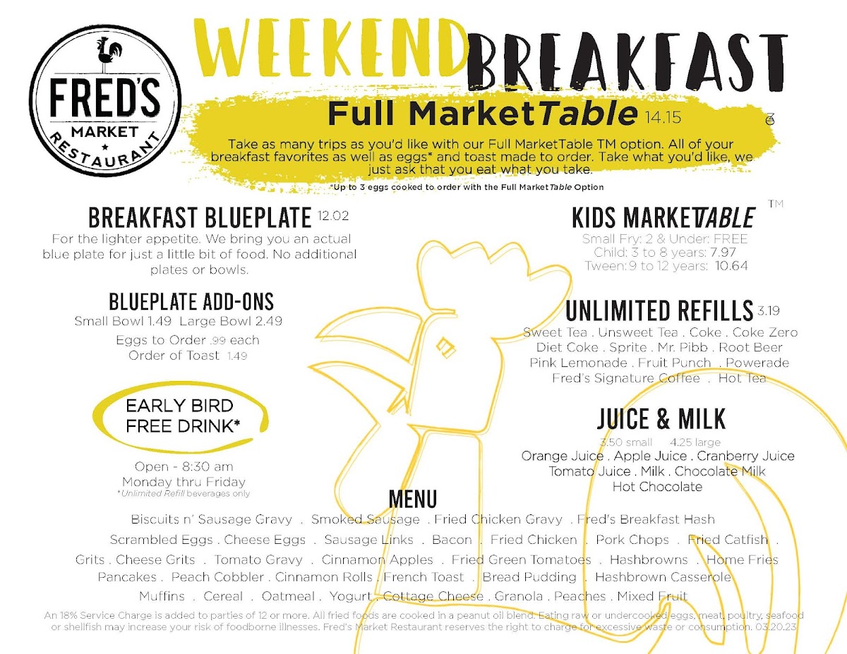 In essence, whether you’re dropping in for a family breakfast, a hearty lunch, or a cozy dinner, Fred's Market Restaurant is a delightful culinary haven that promises to impress with its inviting atmosphere and scrumptious fare. Don't just take our word for it; let the savory selections speak for themselves and discover why guests keep coming back for more. Treat yourself and your loved ones to a delicious experience at Fred's Market Restaurant, where every meal feels like a feast and every bite brings joy.